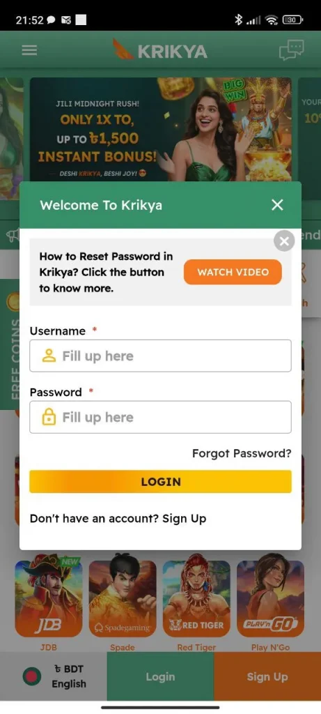 Krikya মোবাইল অ্যাপ দিয়ে রেজিস্ট্রেশন করলে আরও সহজে ও একই নিরাপত্তা মানে একাউন্ট তৈরি হবে: